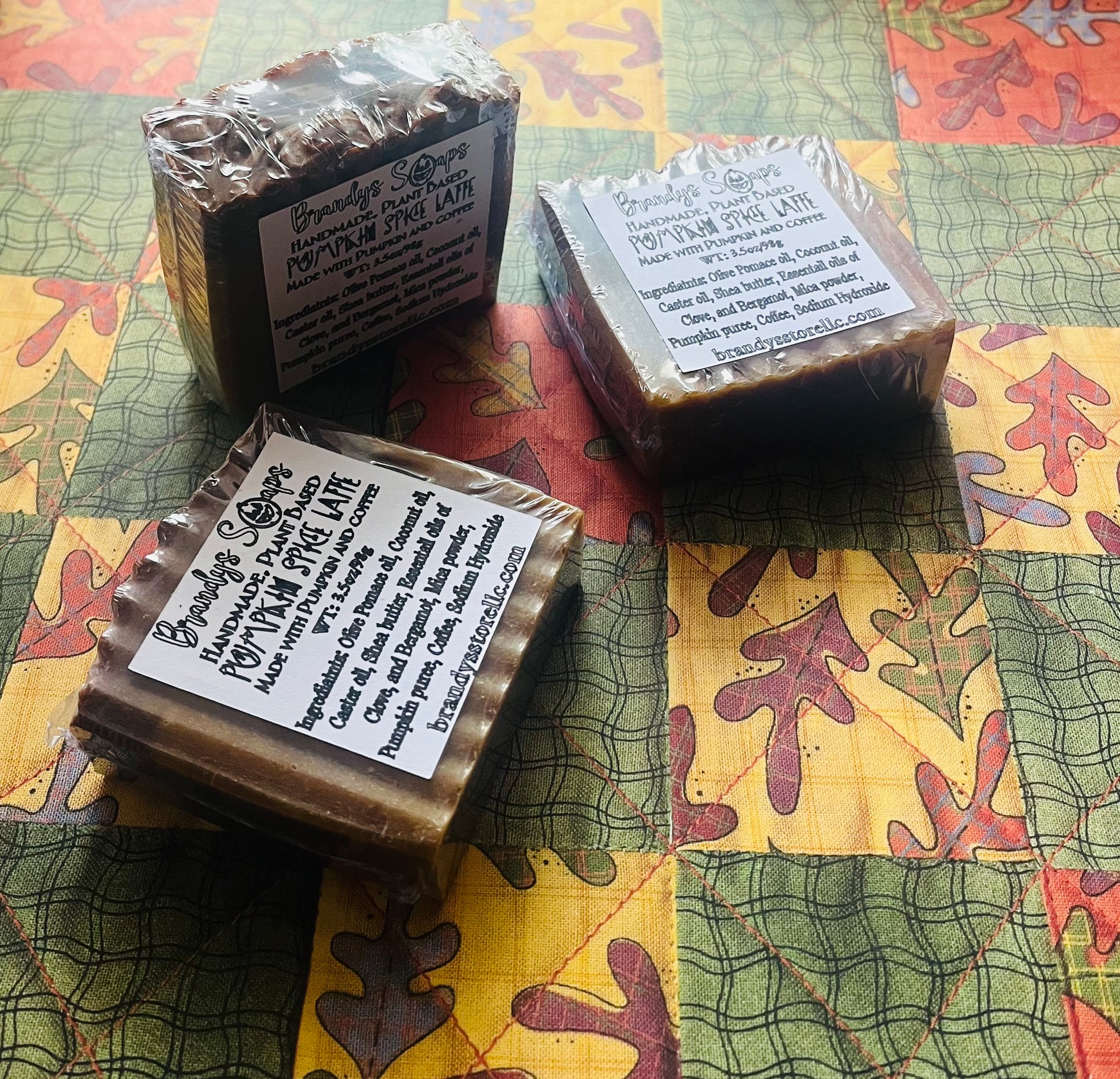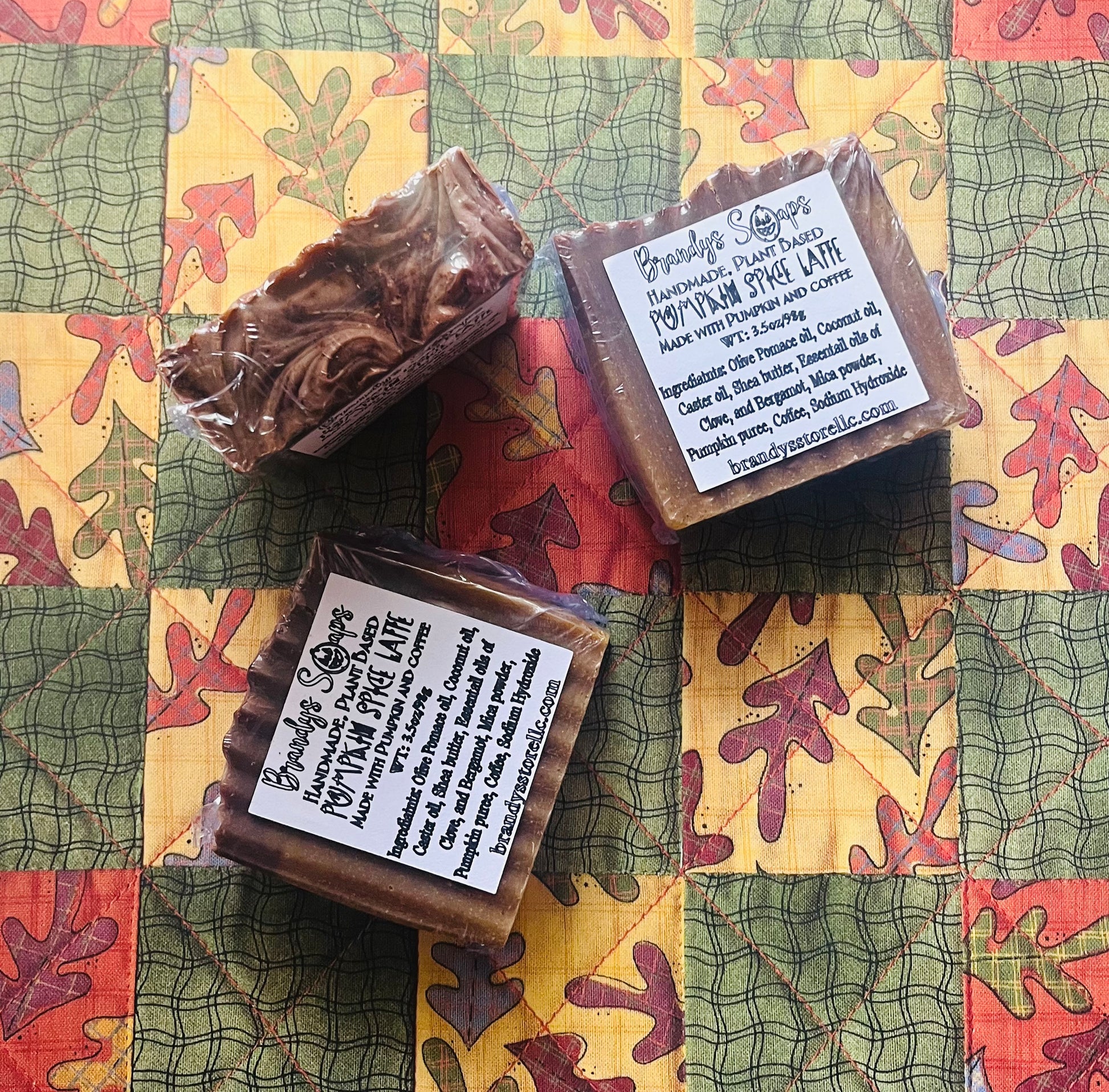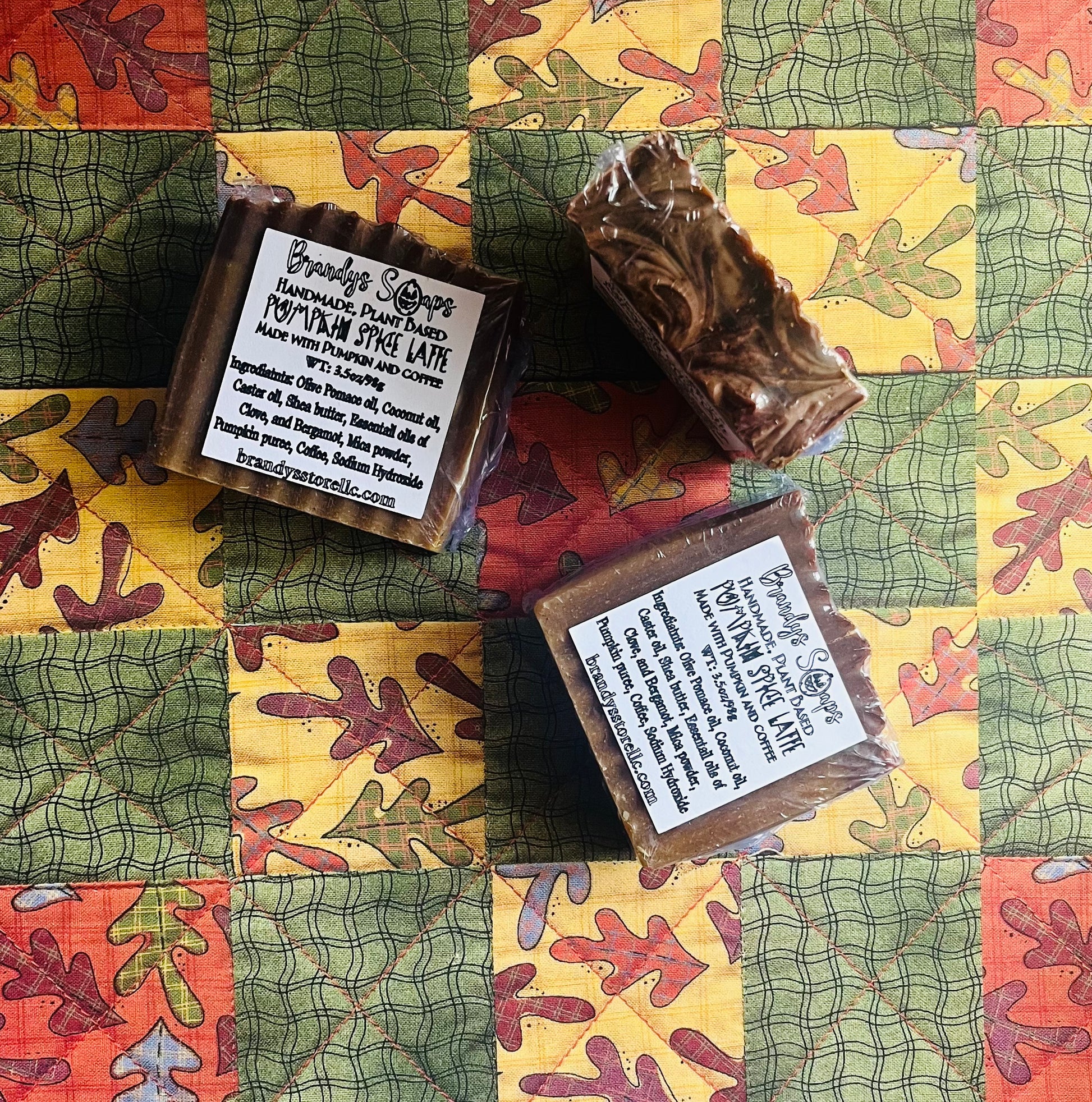 Ingredient: Olive pomace oil, Coconut oil, Caster oil, Shea butter, turmeric Powder, Essential oils of clove and bergamot, Pumpkin puree, Coffee, Sodium Hydroxide